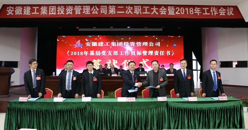 會議在高亢嘹亮的《安徽建工之歌》聲中正式開始。大會聽取并審議通過了公司《總經(jīng)理工作報告》、《財務工作報告》。會議表彰了2017年度公司先進集體、先進個人,簽訂了2018年基層黨支部目標管理責任書、2018年公司經(jīng)濟責任書和安全生產(chǎn)責任書。