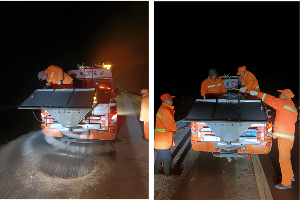 15日晚間,淮北項(xiàng)目公司在運(yùn)營(yíng)的S101、S254路段連夜撒布融雪劑,開(kāi)展除雪除冰。