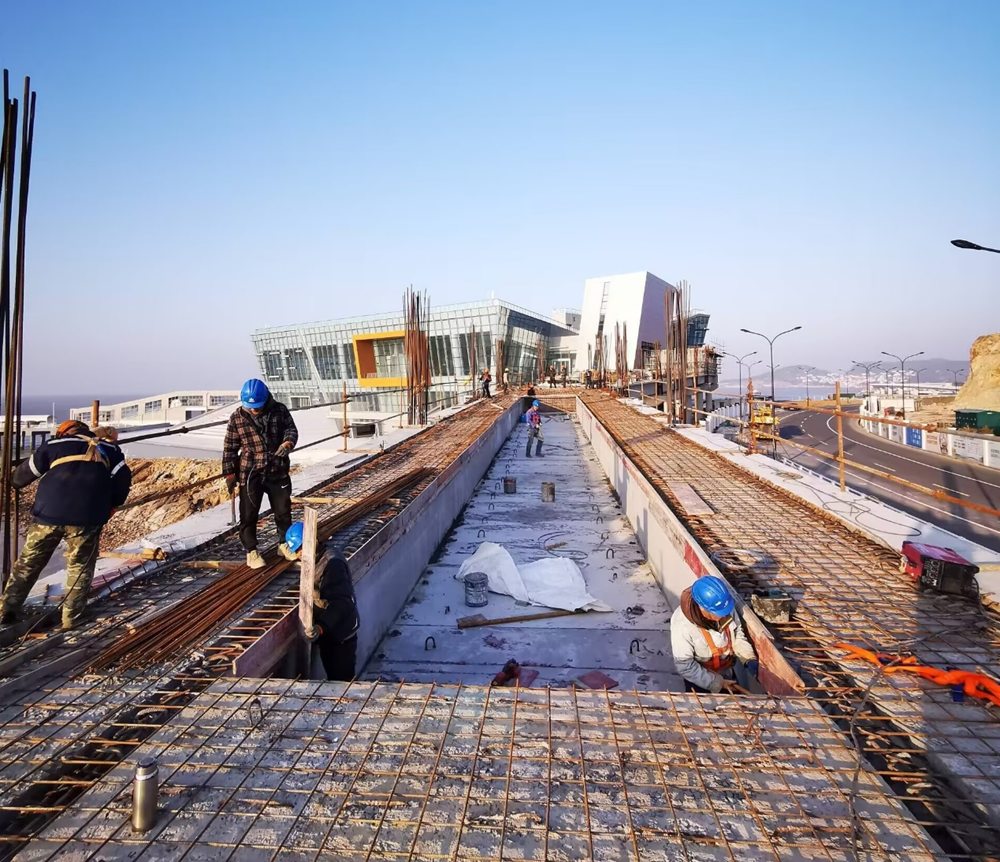 嵊泗PPP項(xiàng)目旅游交通集散中心登船連廊施工,及時(shí)進(jìn)行橋梁上部房建結(jié)構(gòu)支架搭設(shè)與模板安裝工作。