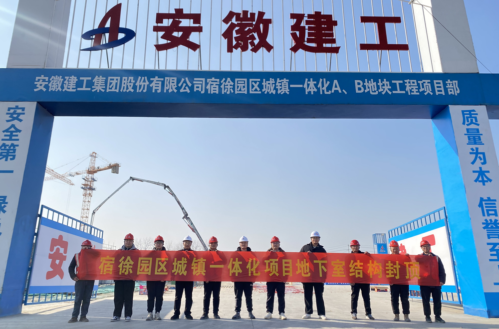 建工投資宿徐產(chǎn)業(yè)園城鎮(zhèn)一體化B地塊項目地下室結(jié)構(gòu)順利封頂