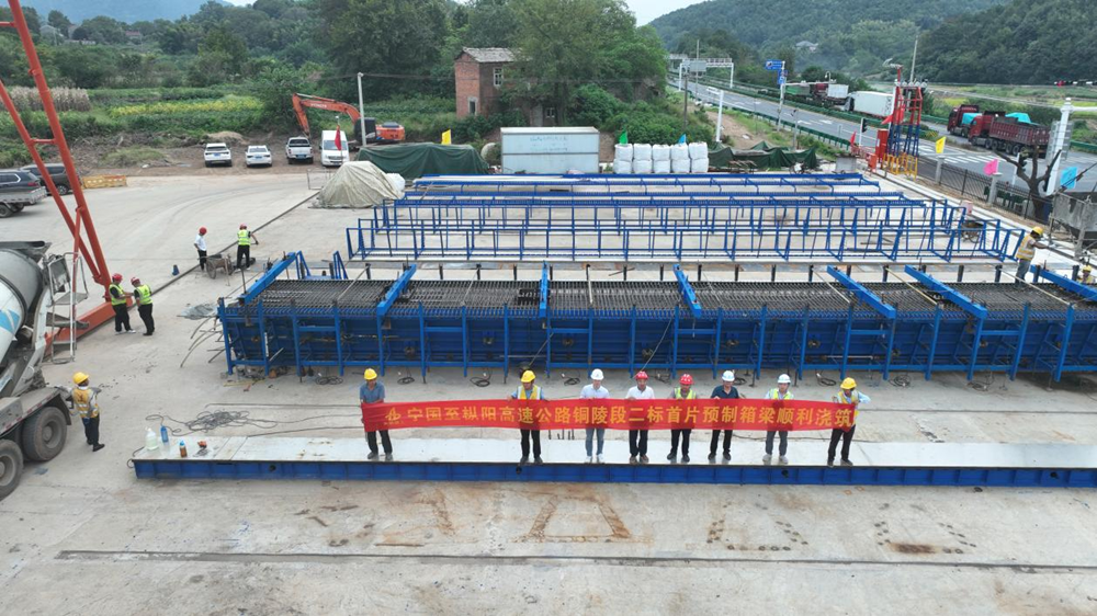 澆筑新起點(diǎn),架設(shè)新征程!建工投資S40寧樅高速銅陵段首片預(yù)制箱梁成功澆筑